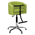 The Mini KID hairdressing chair offers comfort and safety for the youngest clients during haircuts. Height adjustment via a high-rise gas pump facilitates work for children of varying heights, while the stable, silver five-star base holds the chair securely in place. This model is available with adjustable seat belts or a frame with a handlebar and integrated footrest.