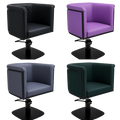 The GIO hairdressing chair is an organically shaped bucket chair with a bent steel frame, thanks to which it fits perfectly into current interior design trends.