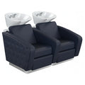 The ROYAL SOFA multi-station hairdressing wash station is a premium model, ideal for salons seeking to combine comfort with a striking visual impact. Deep, bold Chesterfield-style button tufting adorns the outer surfaces of the armrests. A wide range of upholstery options allows for precise customization, allowing you to perfectly match the wash station to the aesthetic of your space.