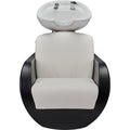 The THOMAS hairdressing wash station is a modern, slightly futuristic model with a slim, organic body line, whose shape is reminiscent of the iconic Egg armchair design by Danish designer Arne Jacobsen.